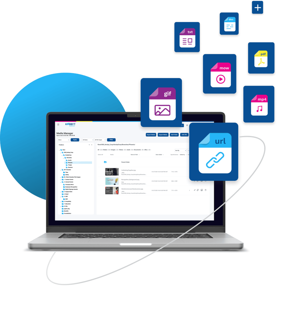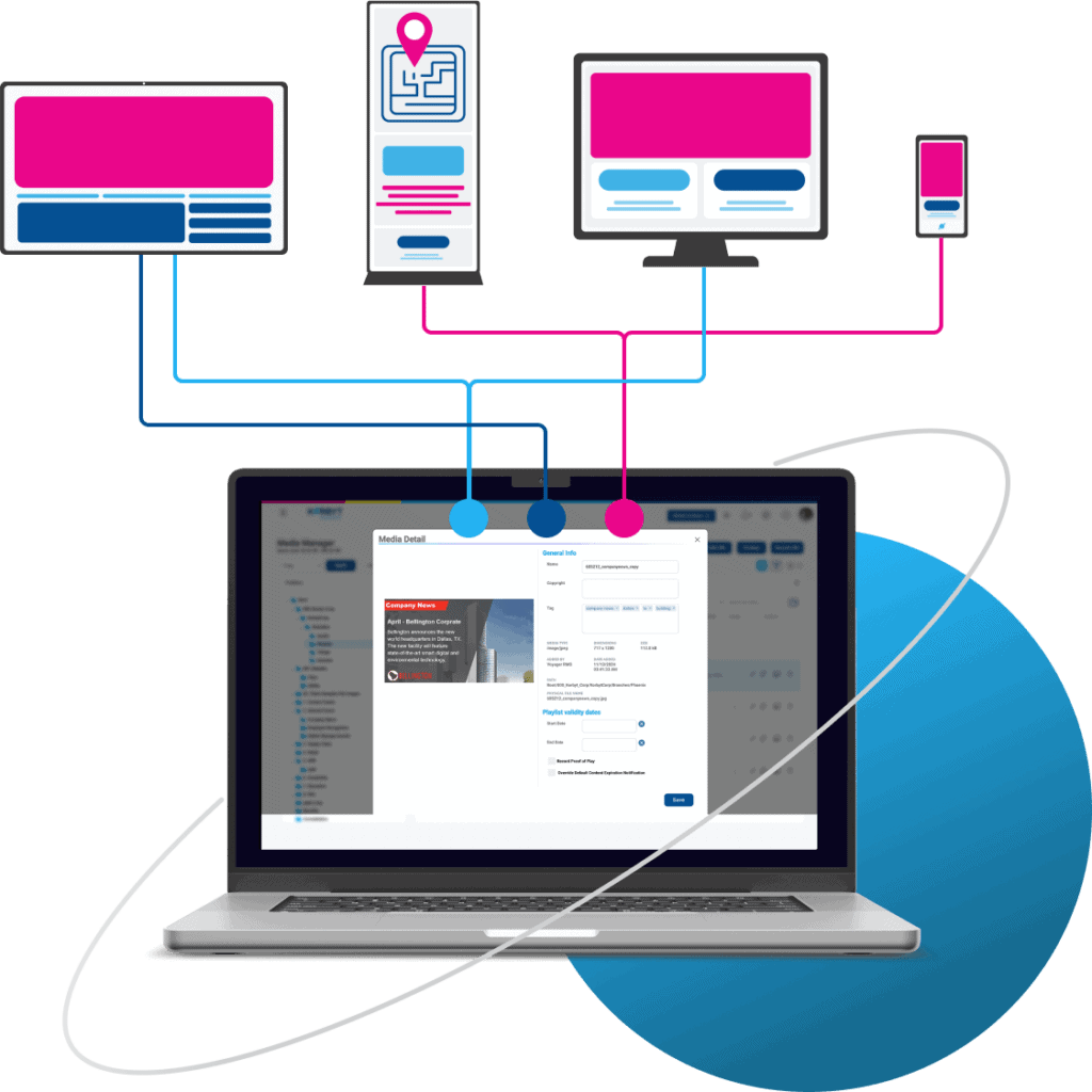 The Korbyt Anywhere digital signage CMS software lets you create, manage, and distribute content across your digital signage network—from one display to thousands—all through a centralized, cloud-based platform.
